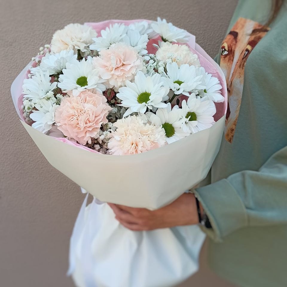 Классический букет из стойкого цветочного состава в нежных оттенках