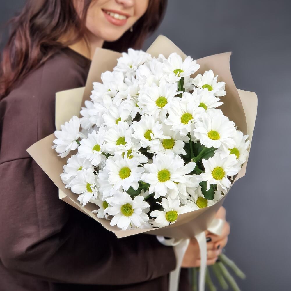 Букет из 7 кустовых хризантем, оформленный в натуральную упаковку из крафт-бумаги и украшенный нежной лентой. Этот букет станет прекрасным подарком для близкого человека или любимого человека, созд...