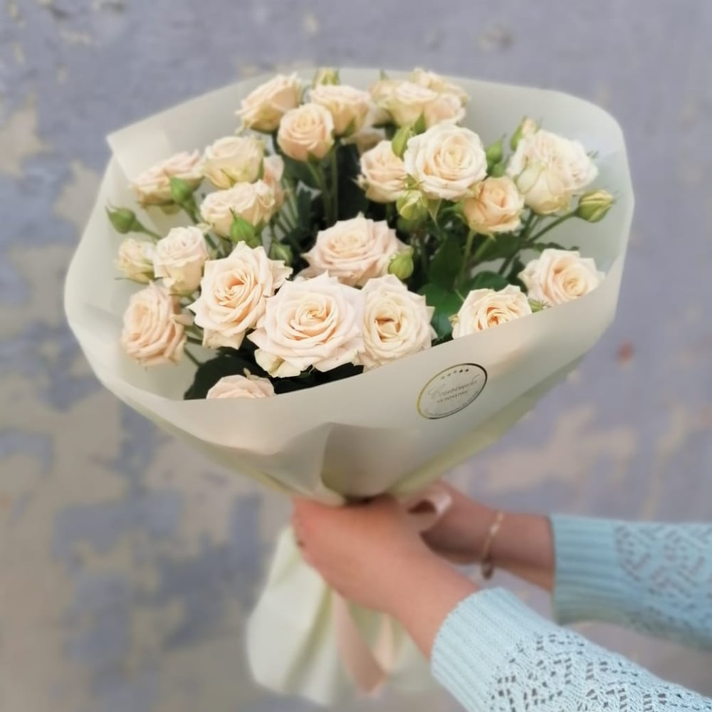 Погрузитесь в мир нежности с нашими кустовыми розами. Изысканные бутоны, словно сотканные из шелка, в стильной упаковке – идеальный подарок, чтобы выразить самые теплые чувства.