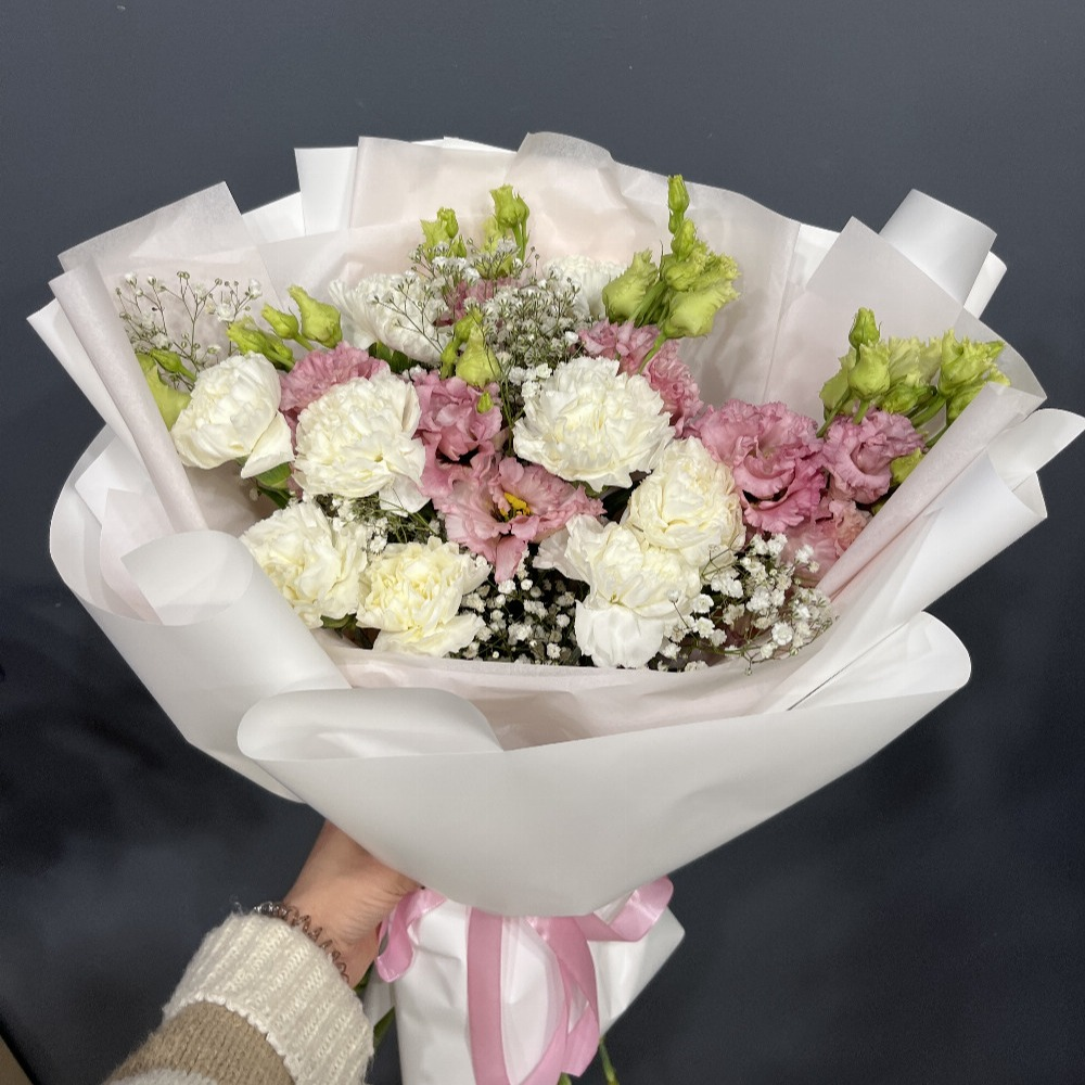 Букет «Нежные мечты» из эустом и гипсофил