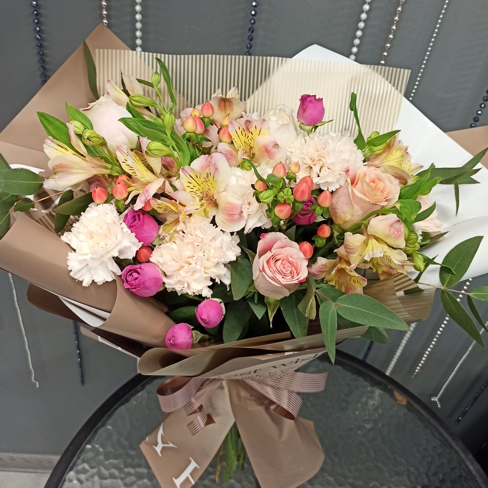 Объемный, нежный букет в эффектной, стильной упаковке.