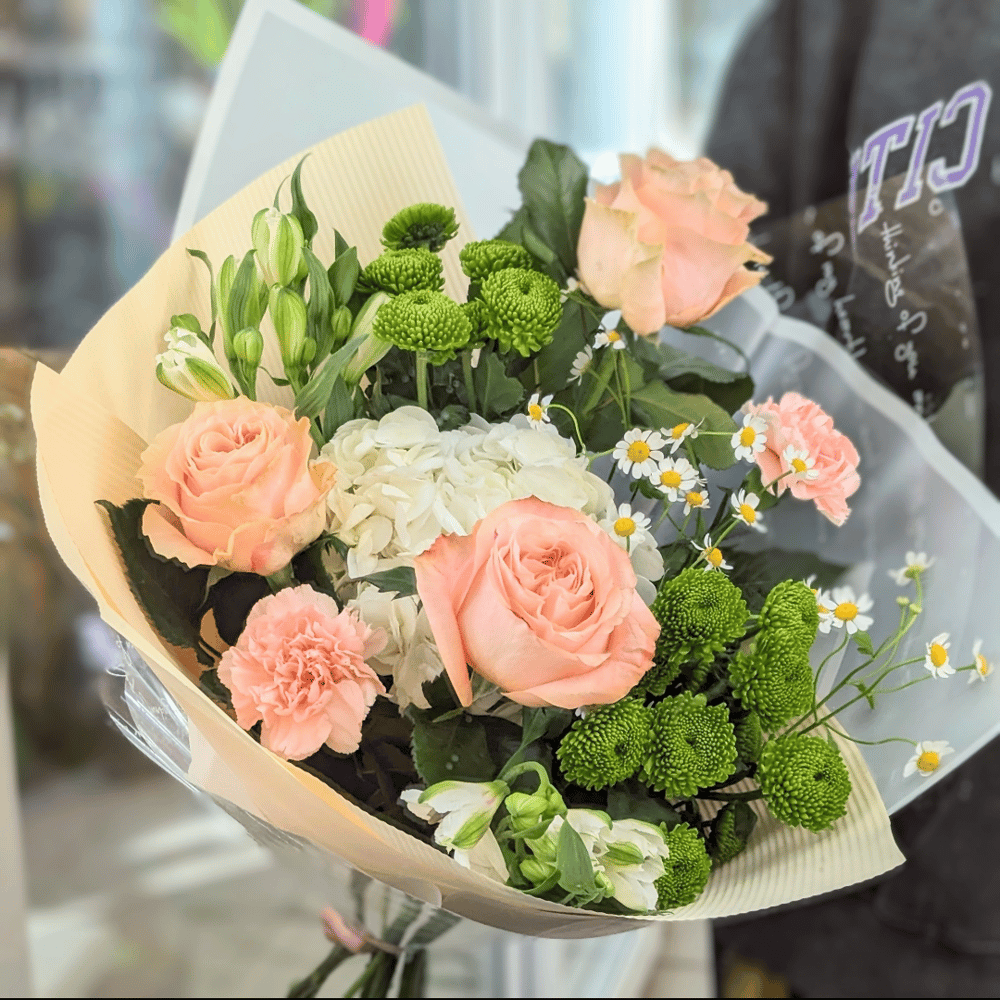 Букет «Нежные объятия» из хризантем и альстромерий
