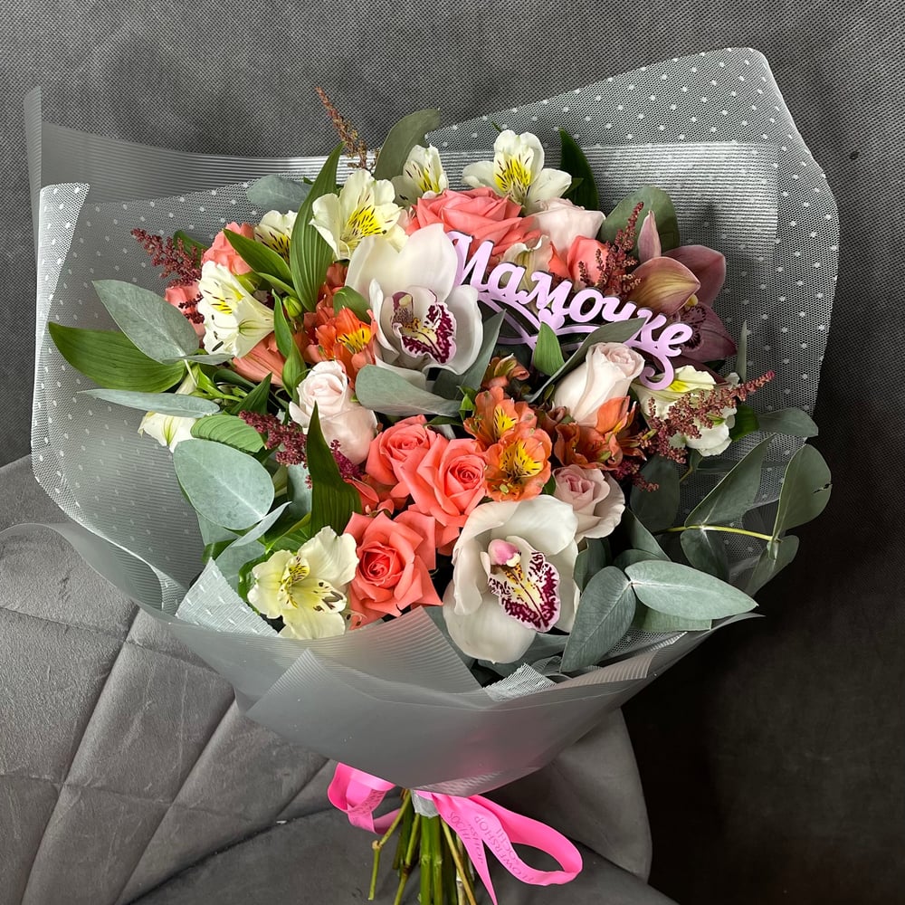 Букет «Нежные слова для мамы» из роз и альстромерий