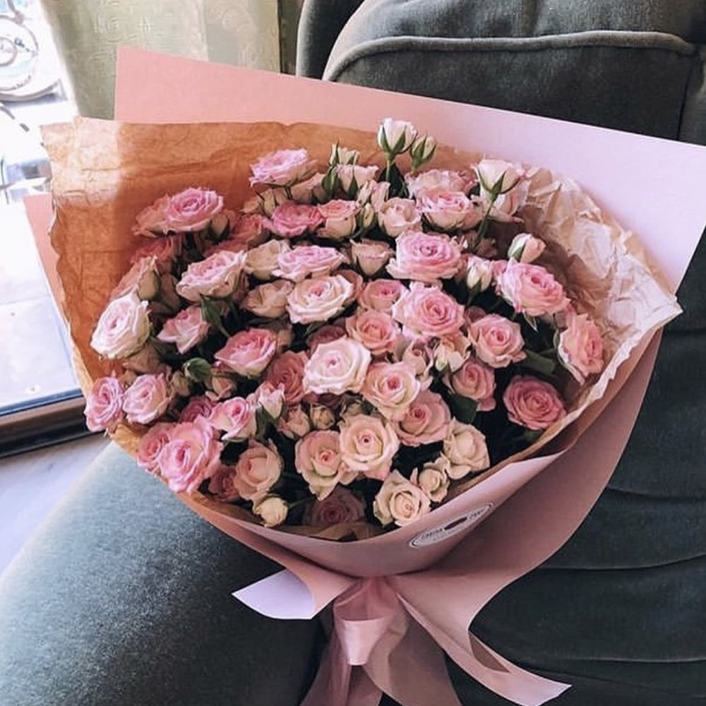 Нежная кустовая роза, любимица всех девушек, в дизайнерской упаковке, отличный выбор на любой случай