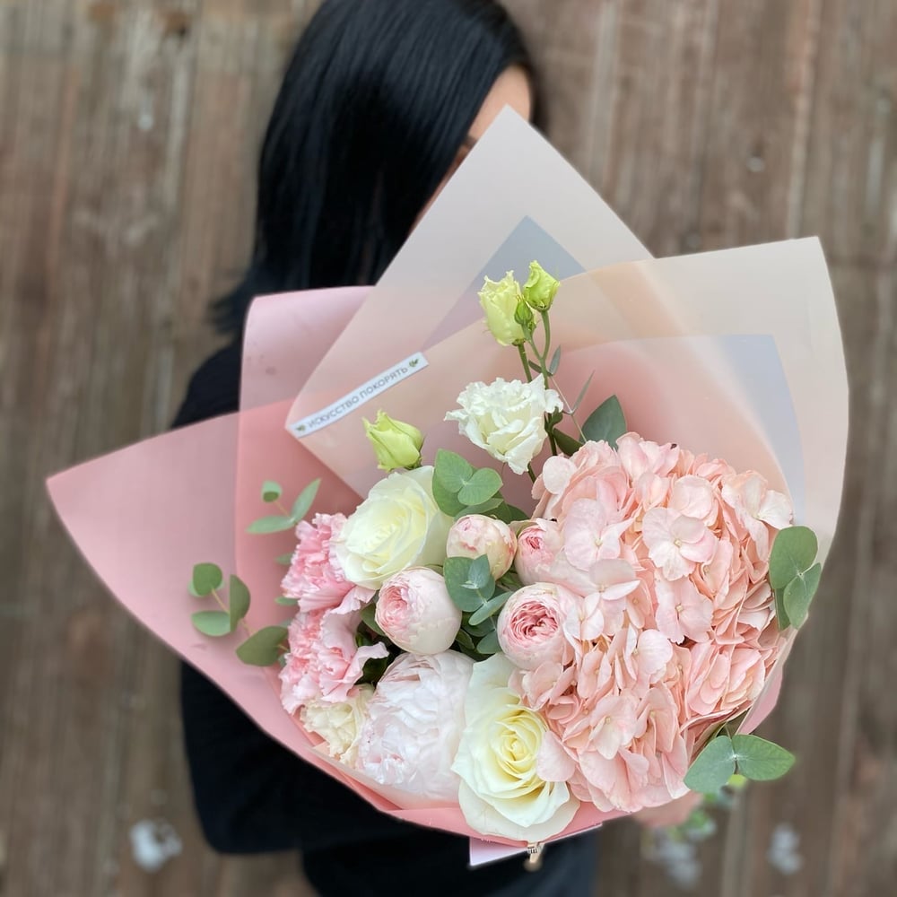 Сборный букет с добавлением розовой гортензии