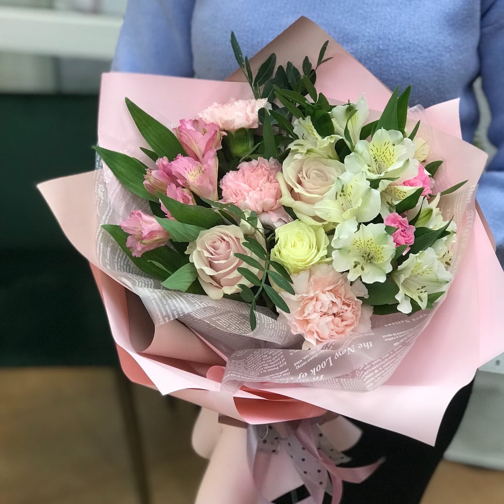 Букет «Нежный» из роз и альстромерий