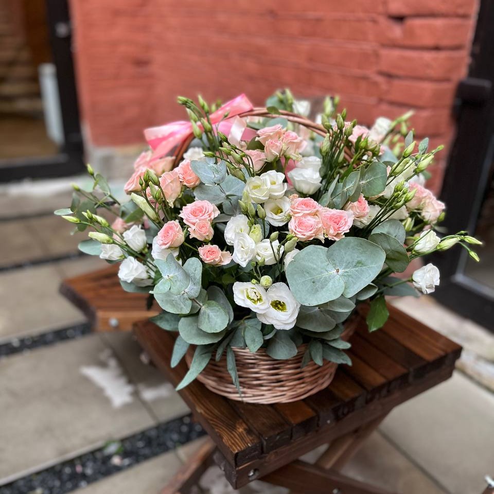 Корзина с цветами «Нежный ангел» из эустом