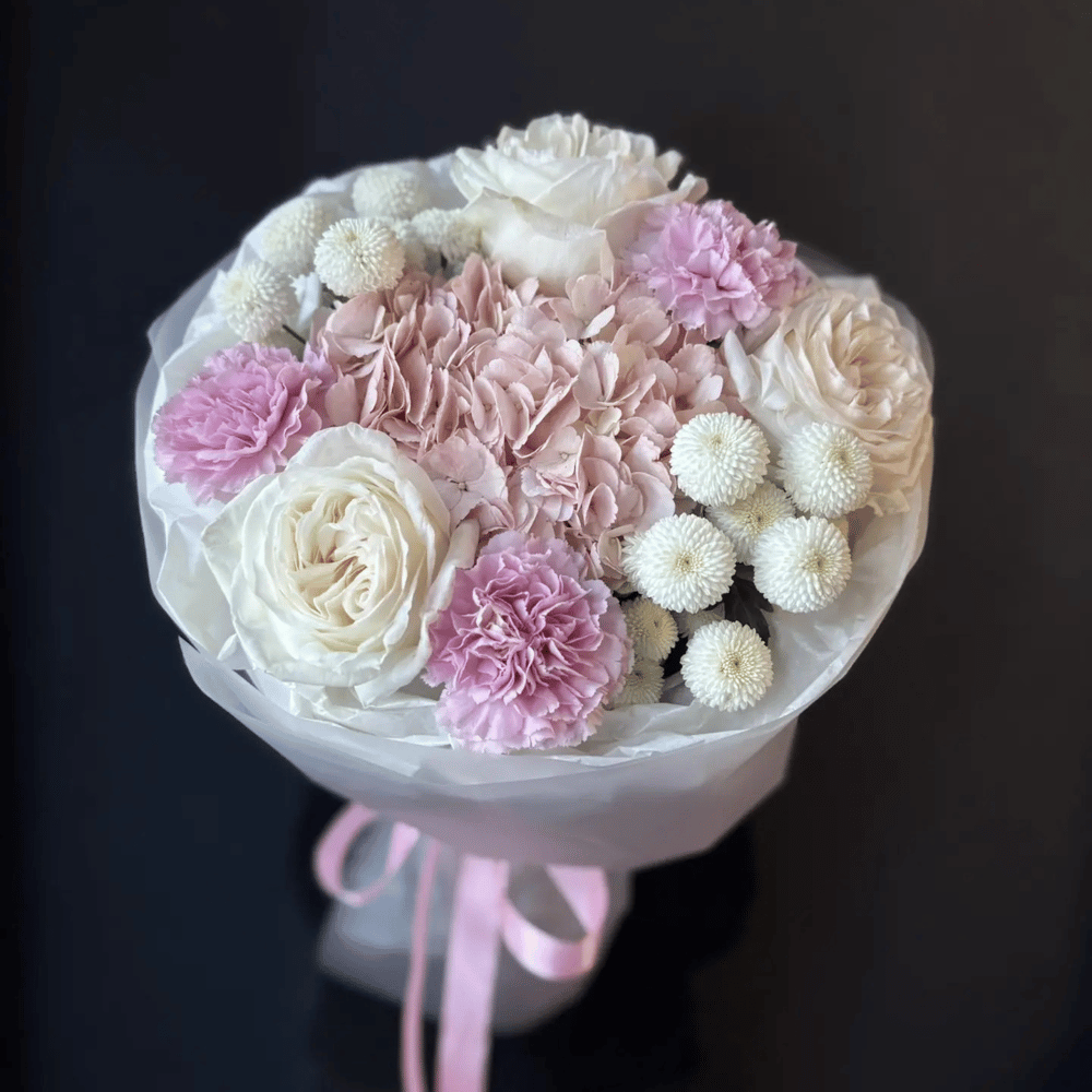 Букет «Нежный бриз» из гвоздик и хризантем