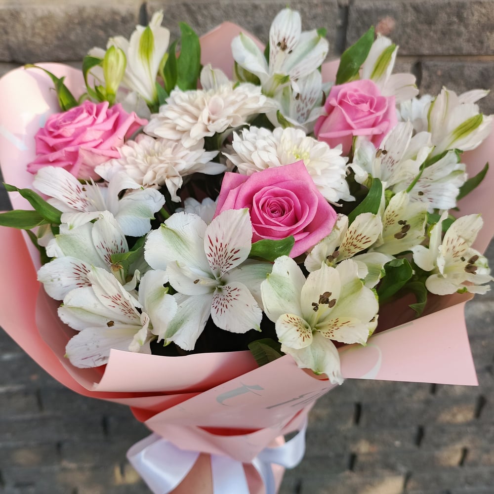 Нежный букет из альстромерий и роз
