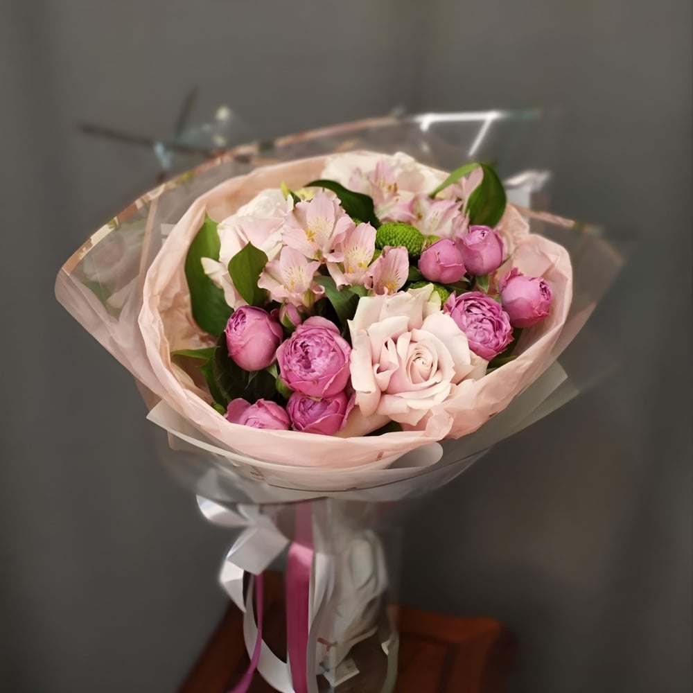 Rosso Piacenza (с ит. - розовый пьяченский) — это воплощение нежности и романтики, созданное в честь путешествия по северной Италии в 2016 году. Букет, собранный из цветов нежно-розовых оттенков, словно переносит вас в атмосферу уютных улочек Пьяченцы, где каждый уголок дышит историей и красотой. Этот букет — идеальный подарок для тех, кто ценит элегантность и изысканность. Нежные розовые цветы, словно лепестки утренней зари, создают атмосферу тепла и уюта. Rosso Piacenza — это небольшая, но уютная история о любви и путешествиях, о красоте и гармонии, о тех моментах, которые остаются в памяти навсегда. Пусть этот букет станет символом ваших чувств и подарит незабываемые эмоции, как будто вы только что вернулись из романтического путешествия. Размеры: диаметр до 55 см., высота до 50 см. Состав: роза французская Mondial Pink - 3 шт., роза кустовая пионовидная - 2 шт., альстромерия - 2 шт., хризантема кустовая Делигрин - 1 шт., эустома -1 шт., упаковка, ленты