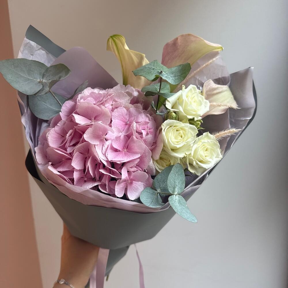 Нежный букет с гортензией и каллами