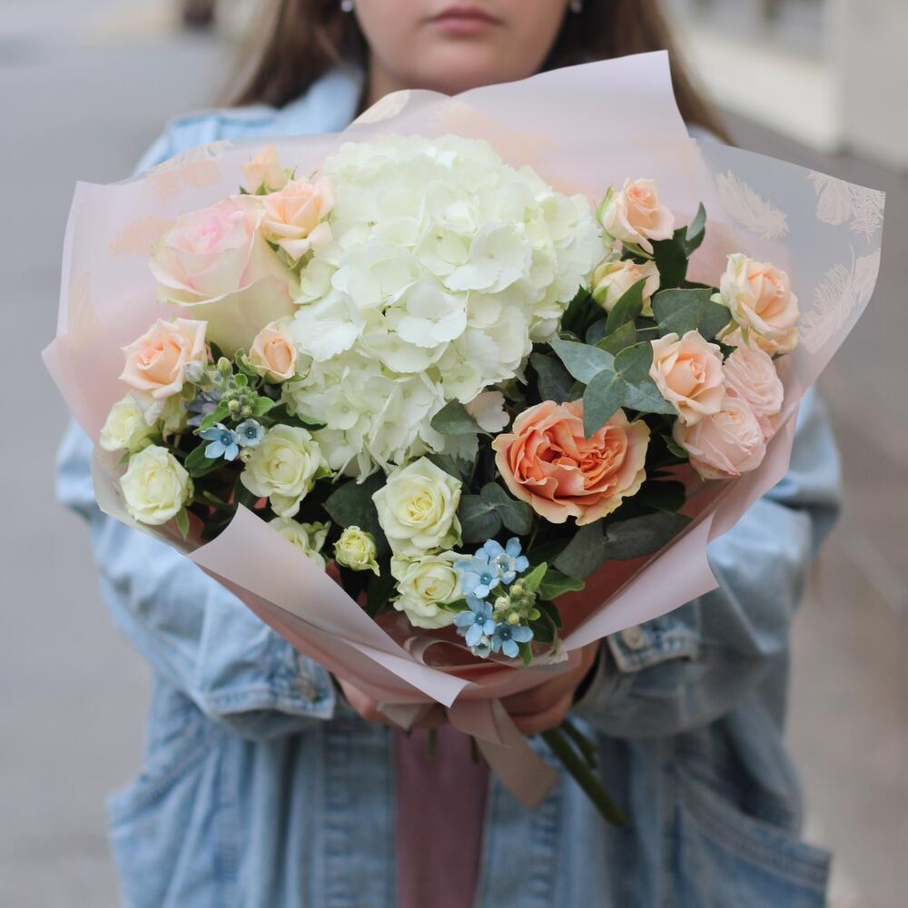 Нежный букет с гортензией и незабудками