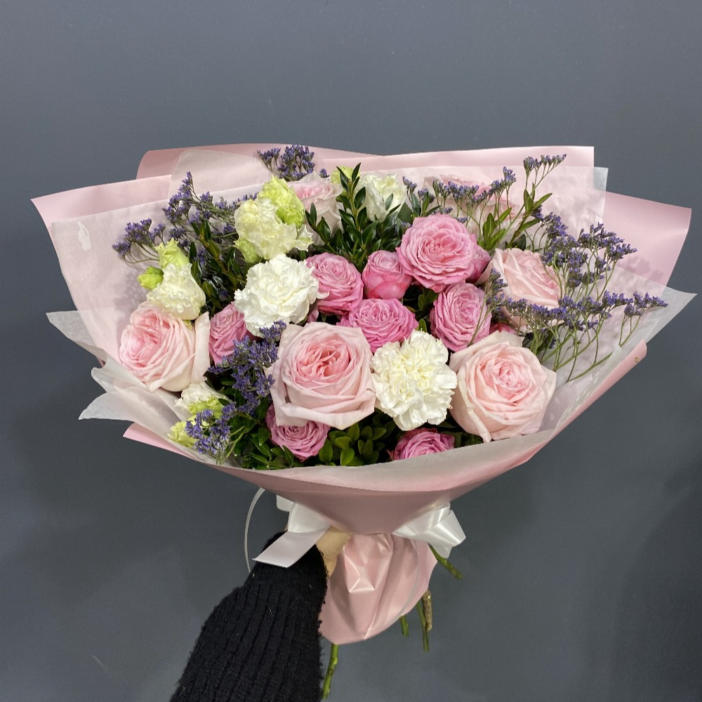 Букет «Нежный трепет» из роз и гвоздик