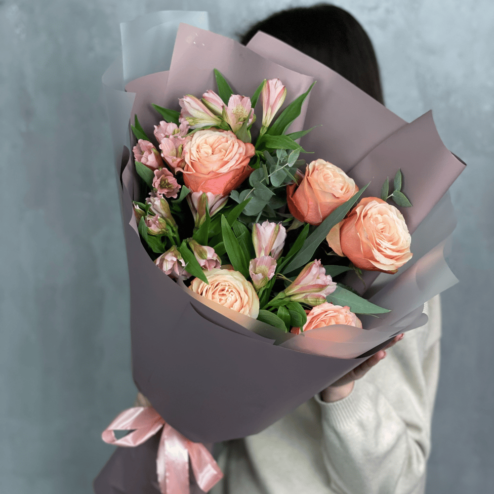 Букет «Новое впечатление» из роз и альстромерий
