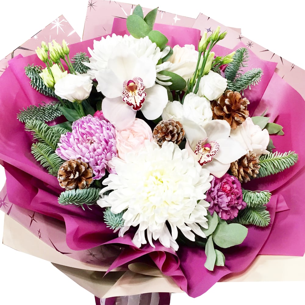 Букет «Новогодние мечты» из хризантем и гвоздик