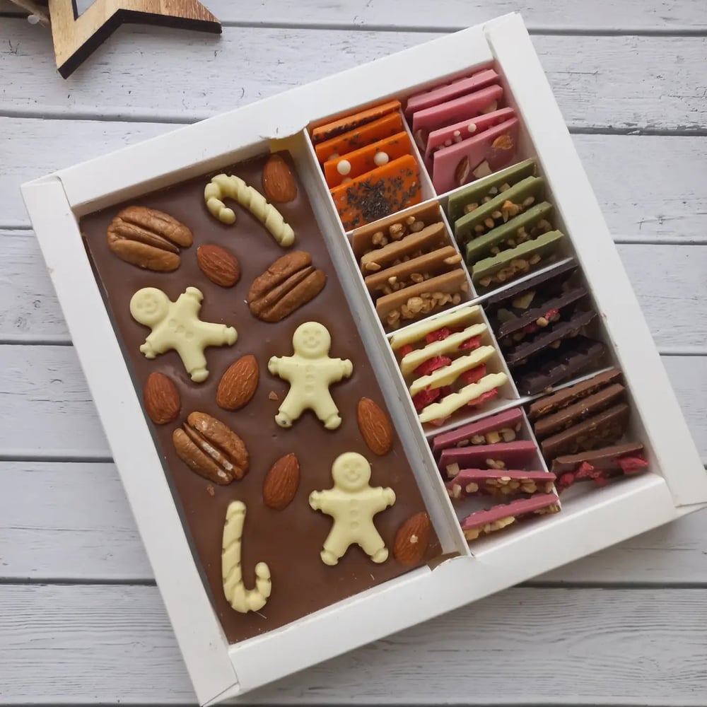 Новогодний набор с плиткой шоколада и мини-плитками микс.