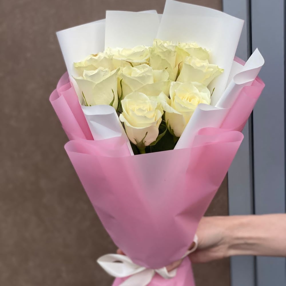 Классический монобукет из белых роз - нестареющая классика, которая выглядит роскошно и богато.