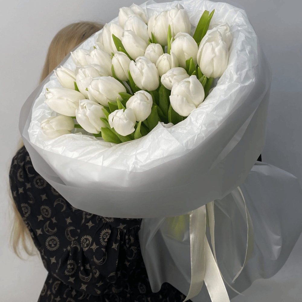 Монобукет из нежных белых тюльпанов💕