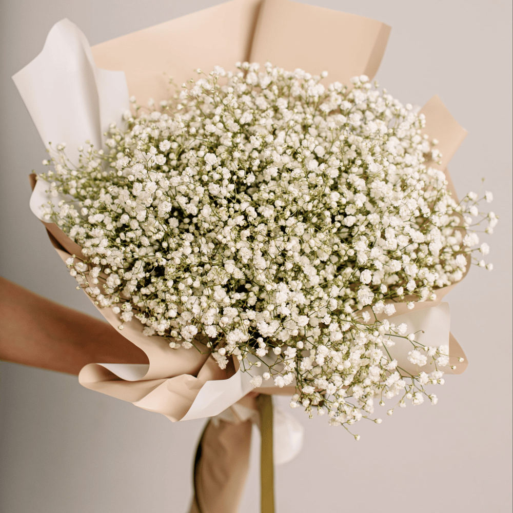 Букеты из этого воздушного и нежного цветка выглядят легко, свежо и утонченно. Символизируют начало новой жизни, чистоту и невинность. Поэтому такой букет отлично подойдет на рождение ребенка. Растение можно преподносить мужчинам, женщинам и детям. Цветки не имеют запаха, поэтому не вызывают аллергии. Это означает, что гипсофила подходит чувствительным к цветочным ароматам людям. Гипсофила очень не прихотливая, не требует тщательного ухода, напоминает воздушное облако. В составе букета: • гипсофила - 7 веточек • дизайнерская упаковка