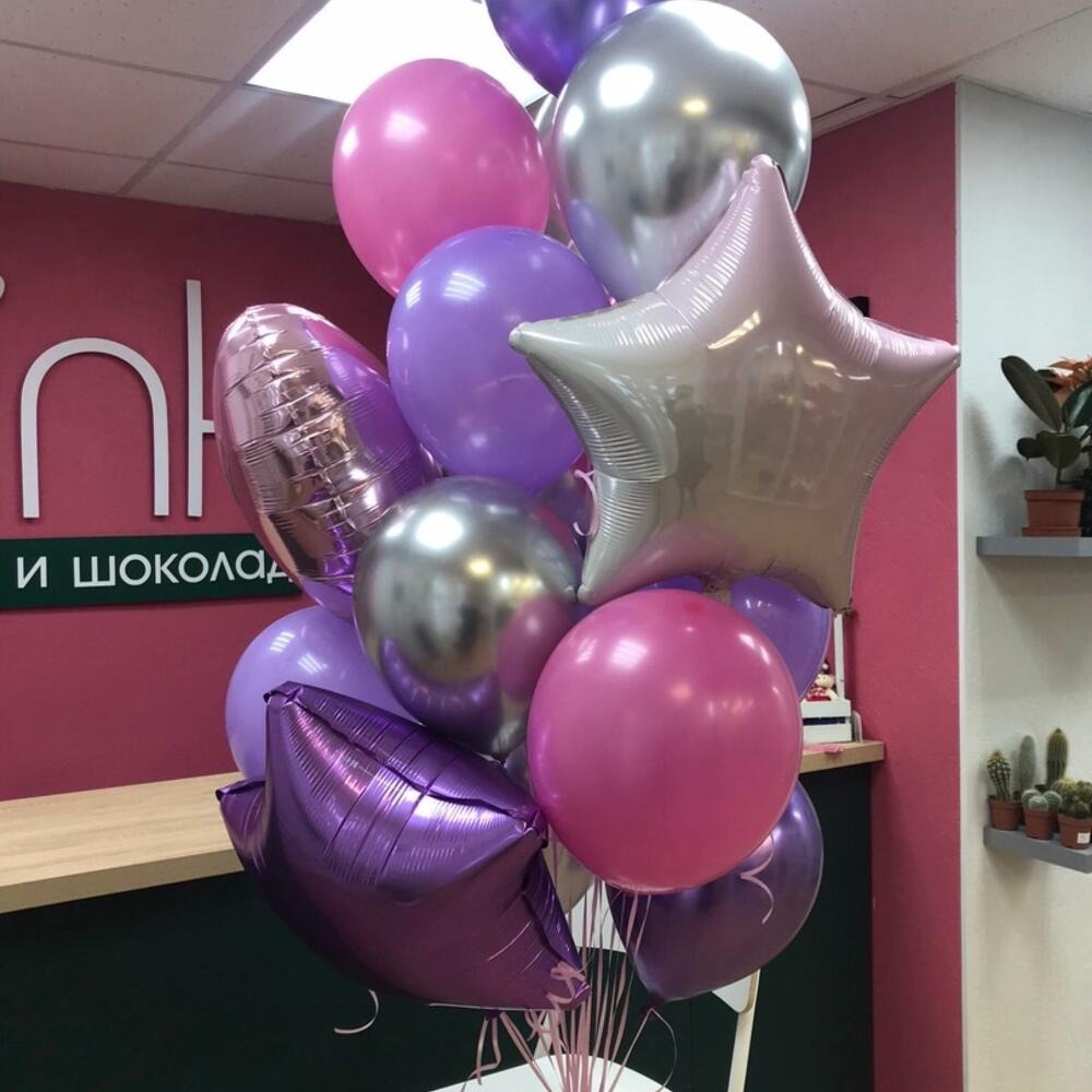 3 фольгированных шара и 12 латексных. Цветовую гамму можно изменить