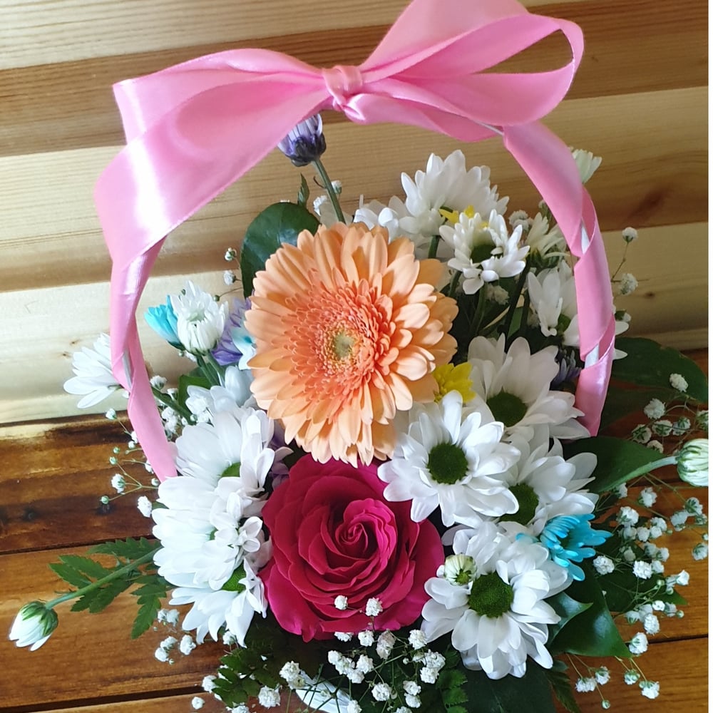 Корзина с цветами «Очаровашка» из хризантем и роз