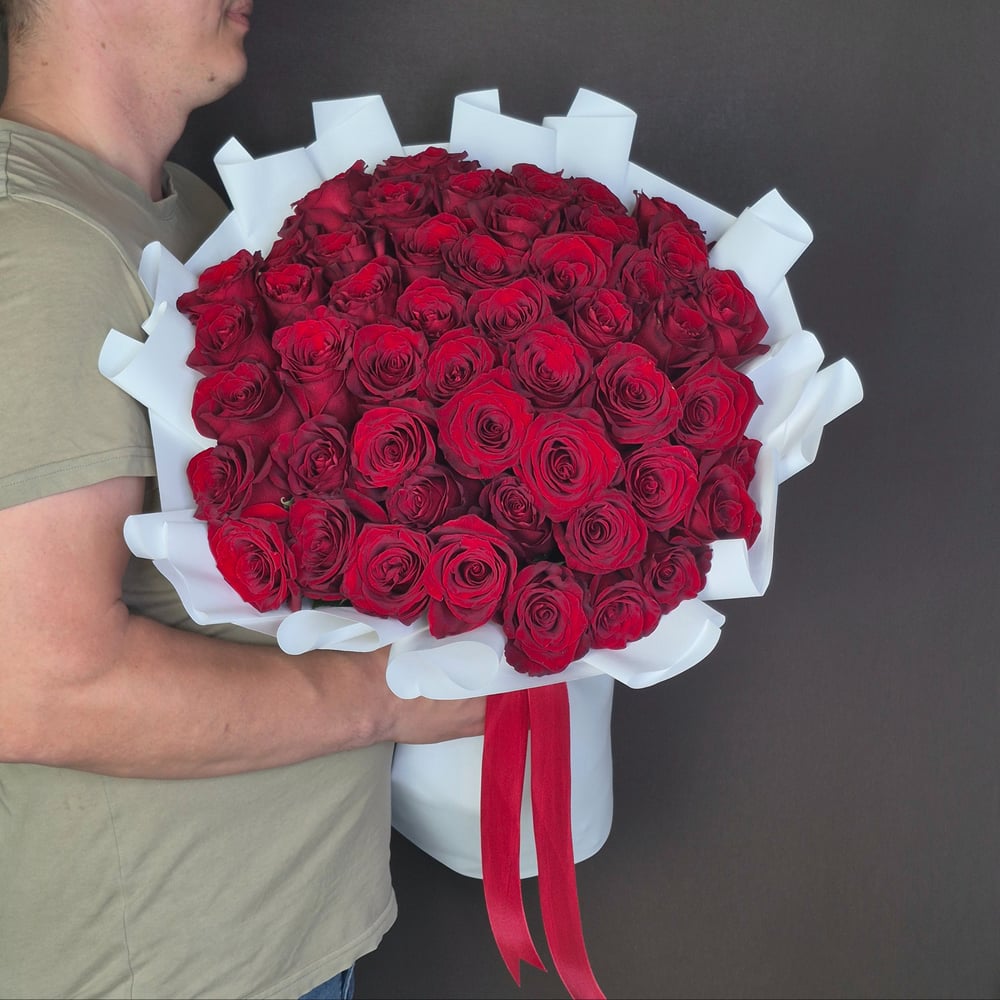 Этот изысканный букет состоит из 51 розы эксплорер, что делает его невероятно нежным и роскошным подарком. Благодаря упаковке из качественной корейской пленки, тишью и ленты атласной, этот букет пр...
