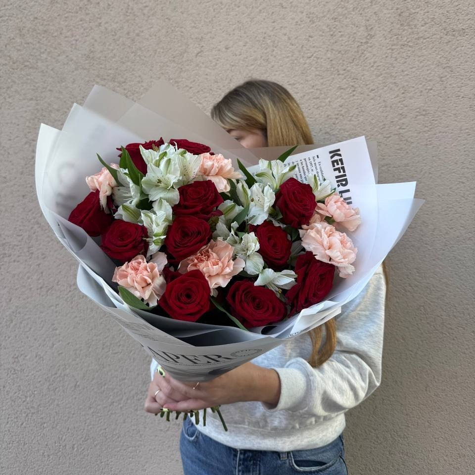 Сборный букет из роз,альстромерий,гвоздик