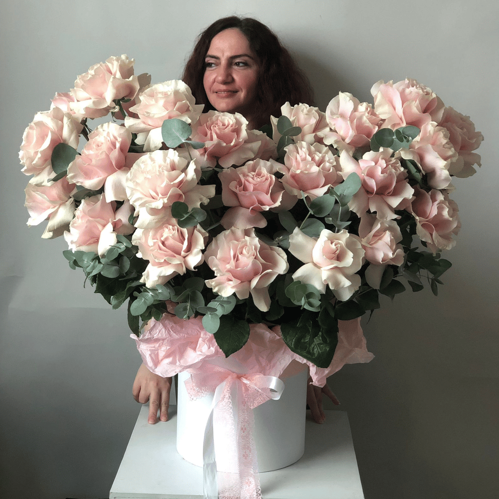 Шляпная коробка с цветами «Огромная композиция с французскими розам»