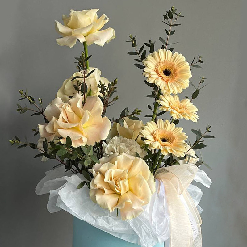 Шляпная коробка с цветами «Оранжевое небо» из гербер