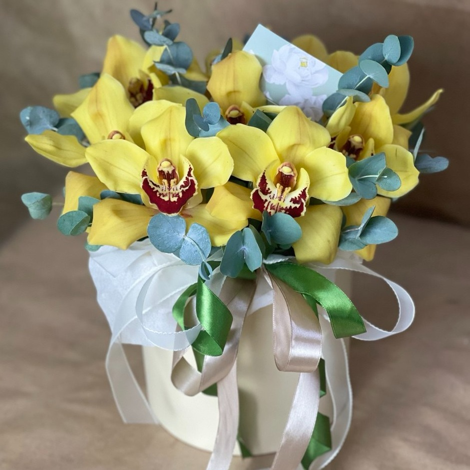 Шляпная коробка с цветами «Орхидеи в коробке»