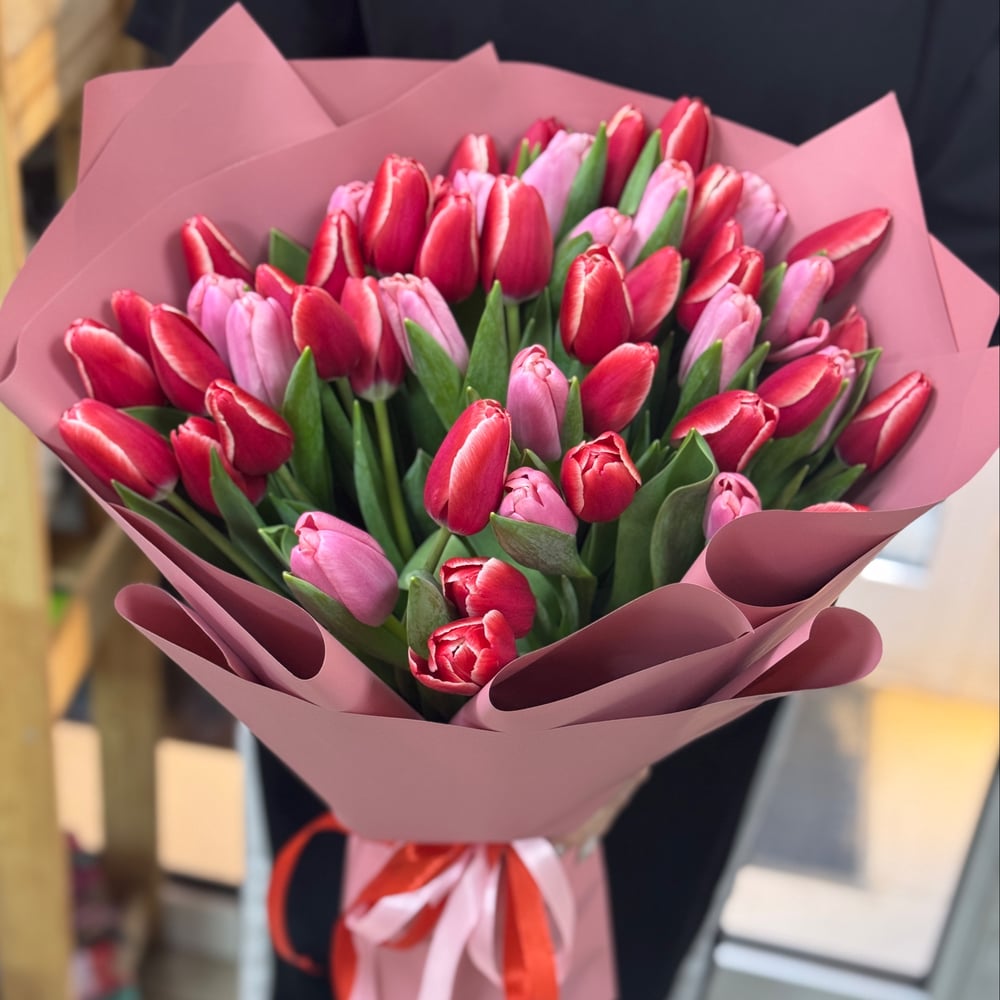Шикарный букет из 51 тюльпана, очарует с первого взгляда