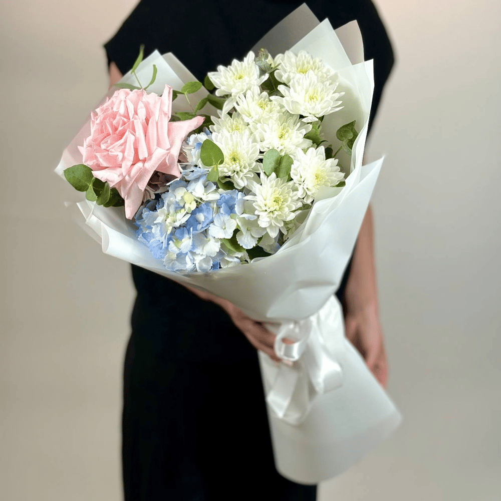 Букет «Озарение» из хризантем и гортензий