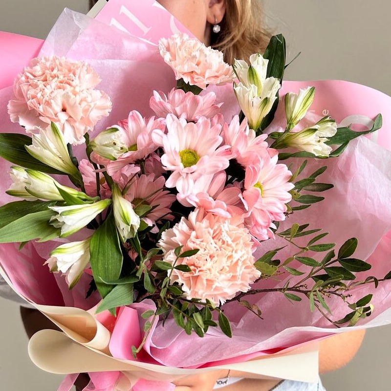 Букет «Пение птиц» из альстромерий и хризантем