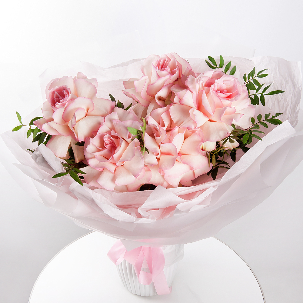 Этот букет – настоящий символ утонченной красоты. Розовые розы Эквадора в сочетании с фисташкой создают впечатление нежной перламутровой радуги. Современная упаковка придает букету стильный и изысканный вид, делая его идеальным подарком для особого случая.