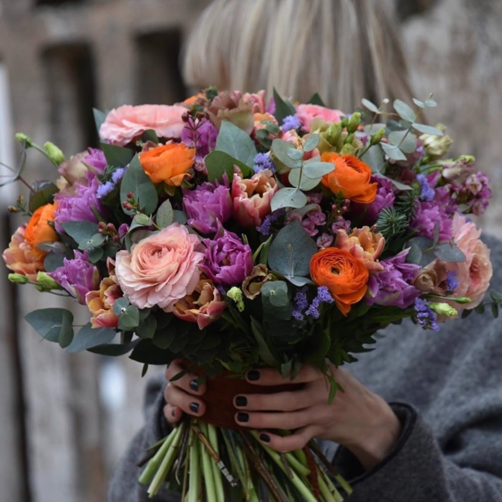 Букет «Персидский ковер» из тюльпанов и экзотических цветов