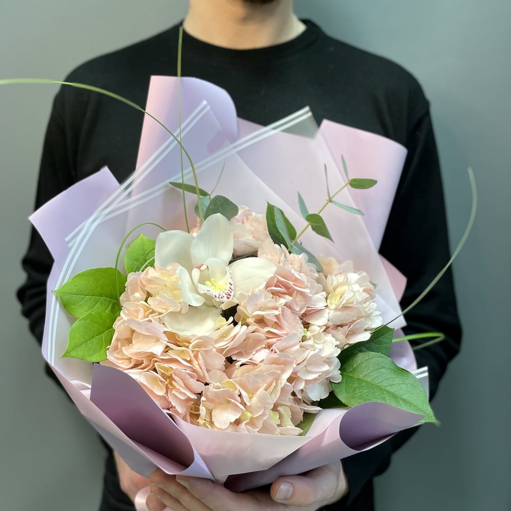 Букет «Первая любовь» из гортензий и орхидей