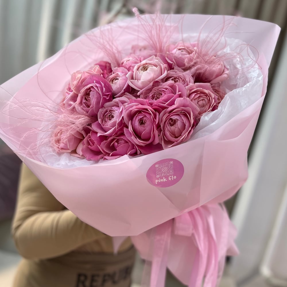 Этот утонченный букет состоит из красивых кустовых роз пионовидной формы редкого сорта сильва пинк и воздушной стифы. Каждый цветок и листочек тщательно подобраны и собраны в стильную упаковку, котор…