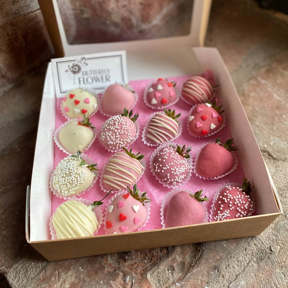 Композиция из клубники в шоколаде в дизайнерской коробке