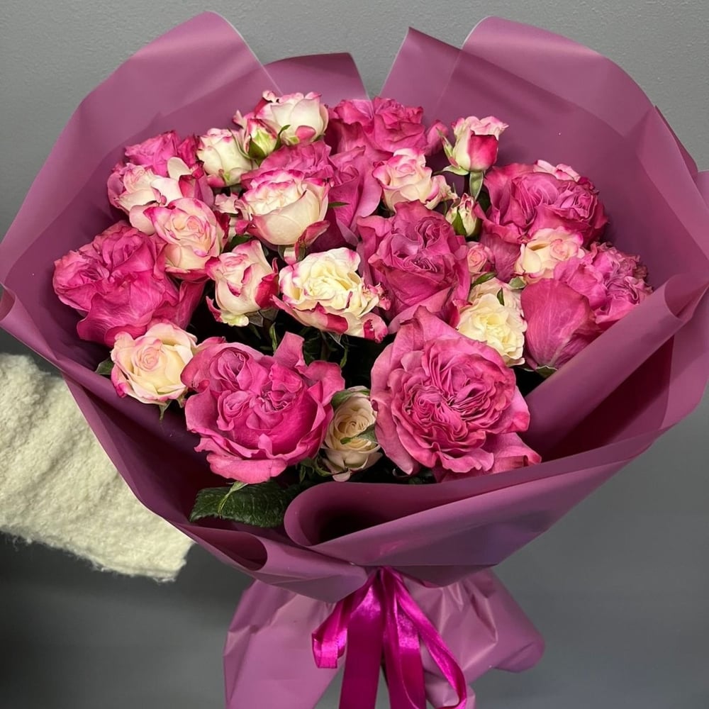 Букет «Пионовидная роза и кустовая рефлекс»