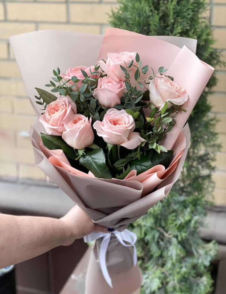 Букет «Пионовидные розы и эвкалипт»