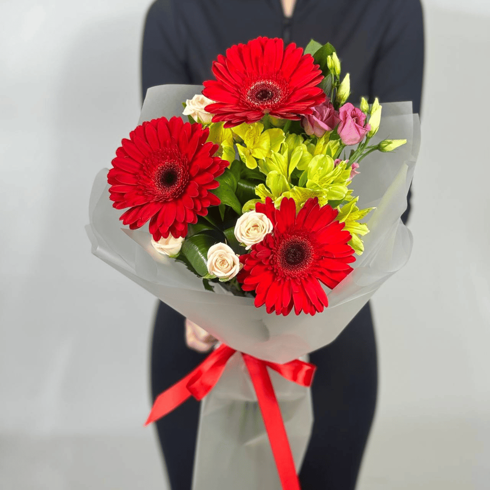 Букет «Пламя» из гербер и роз
