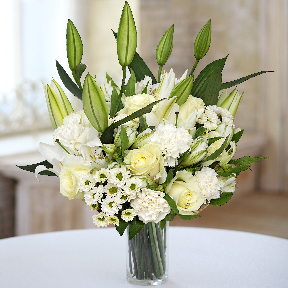White flowers delight with their stunning beauty. This bouquet can be described in two words: elegant and classic.