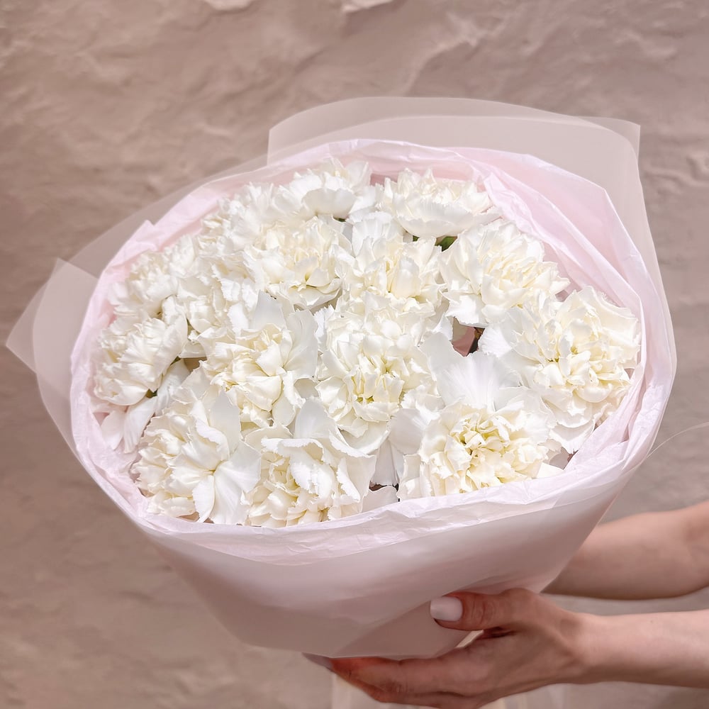 Букет из белых диантусов — это композиция из большого количества белых цветков диантуса. Диантусы (или гвоздики) известны своей стойкостью . Белые диантусы создают ощущение чистоты и нежности. Такой букет станет прекрасным подарком для любого случая и подойдёт тем, кто ценит элегантность и утончённость.