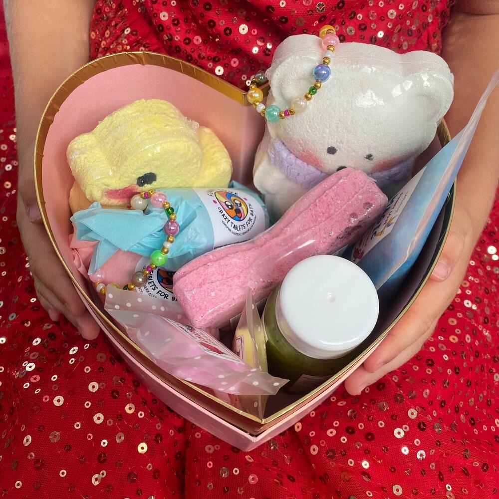 Радовать и удивлять! Описание набора: 1. Детская пена для ванны, 120ml; 2. Ароматная бомбочка для ванны с пеной “Медведь” Funny Love; 3. Ароматная бомбочка для ванны с пеной “Уточка” Funny Love; 4. Ароматная бомбочка для ванны с пеной “Бабочка” Funny Love; 5. Ароматные шипучие таблетки для ванны Funny Love, 3шт - 2 уп; 6. Морская соль с жемчугом “Magic”; 7. Ароматное мини-мыло, 2шт; 8. Очаровательный браслетик - 2шт; 9. Подарочная, качественная коробка с атласной лентой, прекрасно впишется в ваш интерьер. Закажите коробочку красоты и протестируйте качественные средства, представленные в нашем магазине.