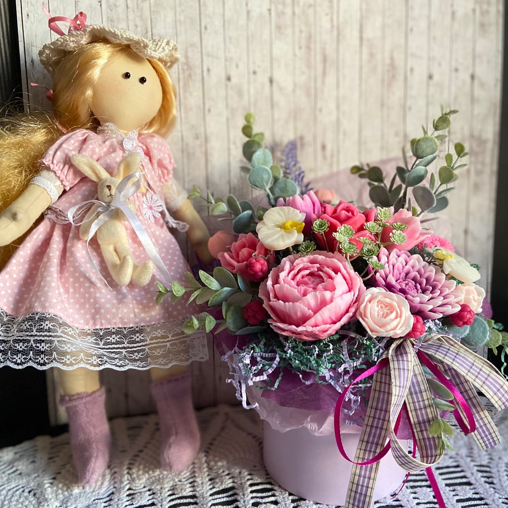 Если вам нужно подарить по настоящему милый и душевный подарок, то этот подарочный набор с куколкой ручной работы и ароматным букетом из мыла ручной работы, как раз то, что нужно!👌🌿🌸