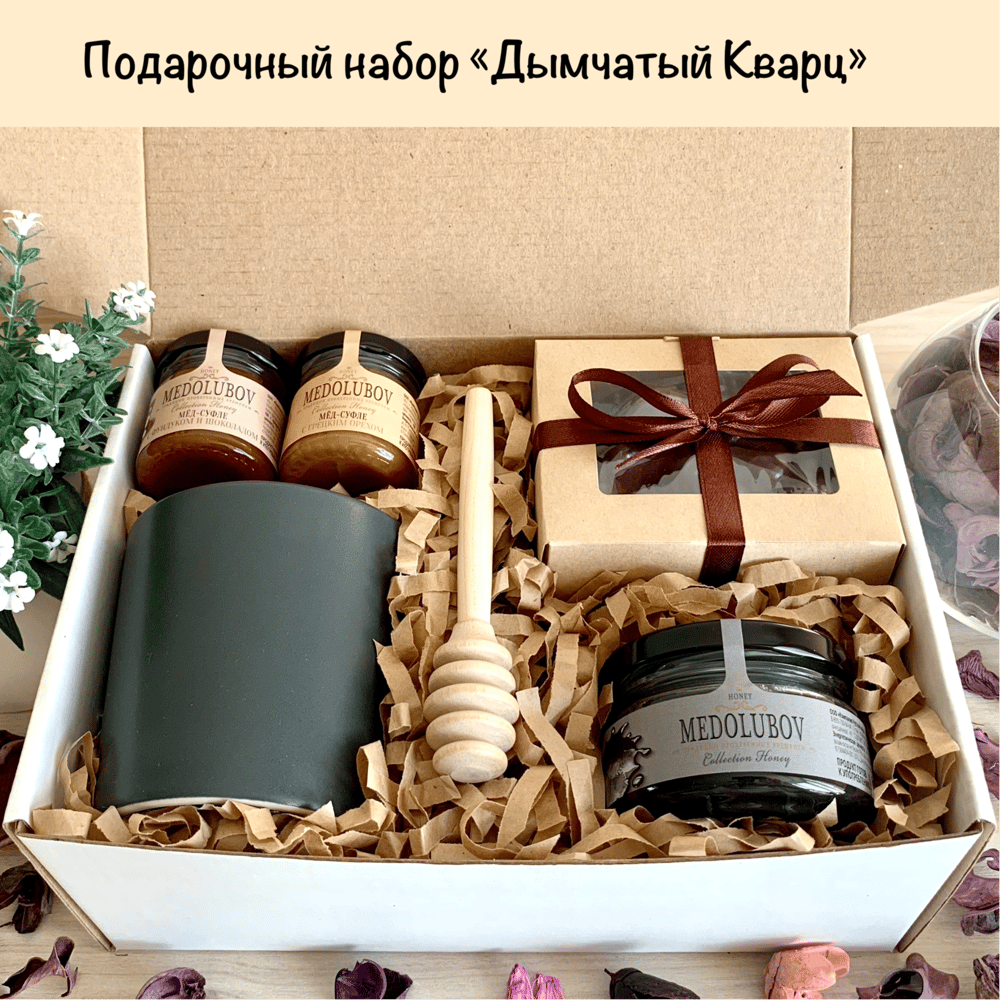 🖤 «Дымчатый Кварц» — подарок с характером и вкусом тишины. Контраст вкусов, глубокие оттенки и чёрная кружка делают этот набор по-настоящему выразительным. Строгий, но душевный — для тех, кто ценит сдержанную заботу и уют без слов 🕯 Внутри: • Мёд-суфле с мумиё (100 мл) • Мёд-суфле с грецким орехом и фундуком с шоколадом (от Medolubov) • Вишня в тёмной шоколадной глазури • Чёрная фарфоровая кружка • Деревянная ложка для мёда 🎁 Подарочная коробка обвязана атласной лентой и дополнена дизайнерской открыткой “От всей души”. ✨ Всё оформлено вручную — аккуратно, продуманно и с заботой о мелочах. Подарок готов к вручению — выглядит уверенно и достойно. «Дымчатый Кварц» подойдёт, когда хочется сказать “я рядом”, “ценю тебя” или просто сделать приятно — без лишнего шума. 🛍️ По Санкт-Петербургу подарок доставляется в фирменном крафтовом пакете с нашим логотипом — аккуратно и со вкусом. 🖤 Present-Box — это подарки, в которых собраны душа, вкус и характер!