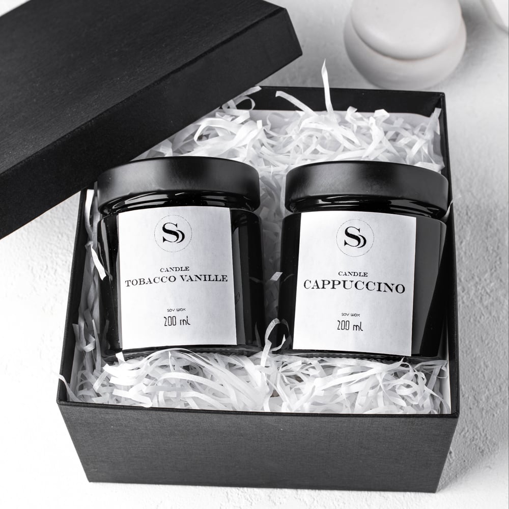 Стильный набор ароматических свечей в стеклянных баночках с популярным и всеми любимыми ароматами Tobacco Vanille и Cappuccino Прекрасный подарок для любителей стильных вещей для декора