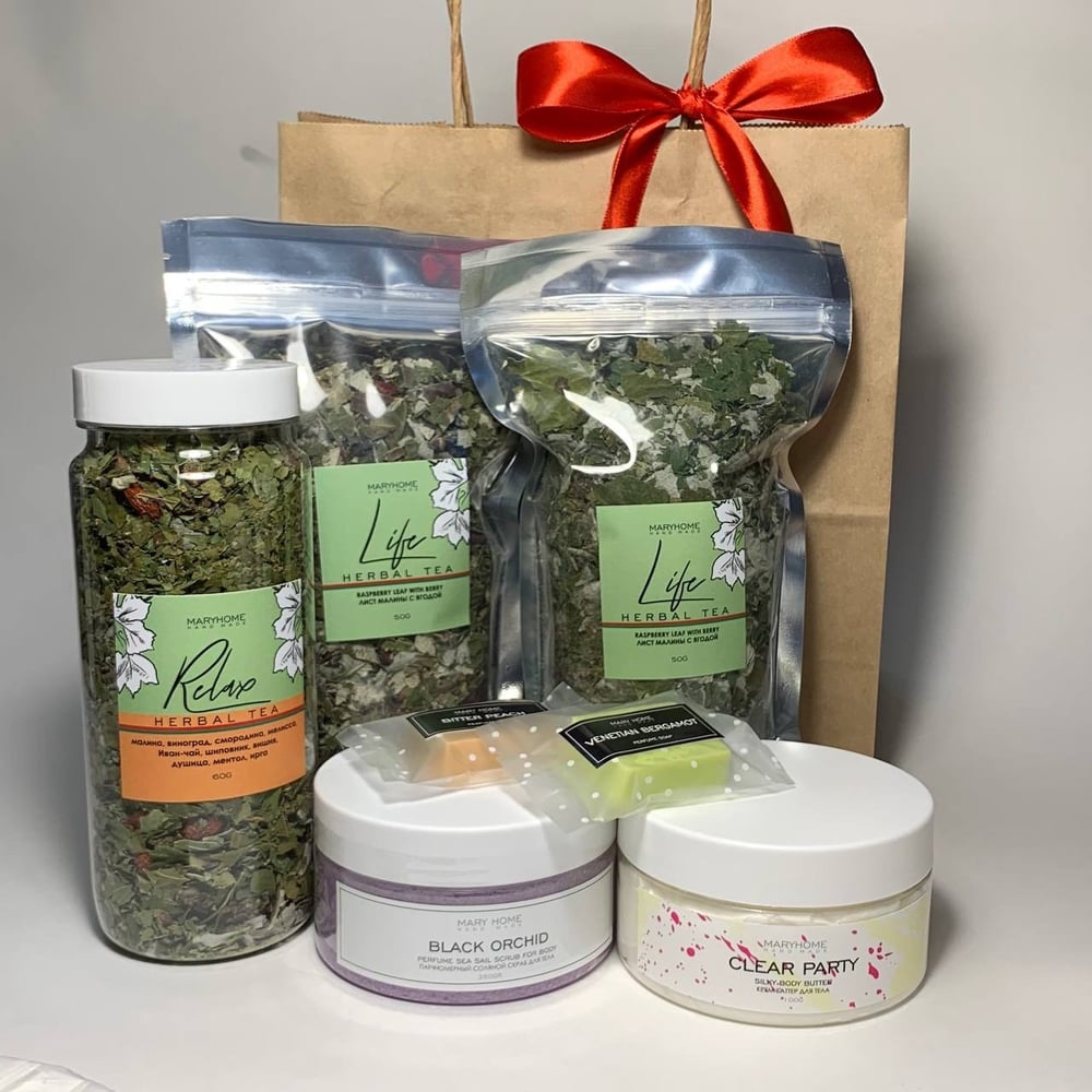 Побалуй себя приятной покупкой или сделай подарок близкому человеку. Описание набора: 1. Травяной чай "Relax" Herbal Tea 2. Лист малины с ягодой Raspberry leaf with berry, Herbal Tea 3. Лист ви…