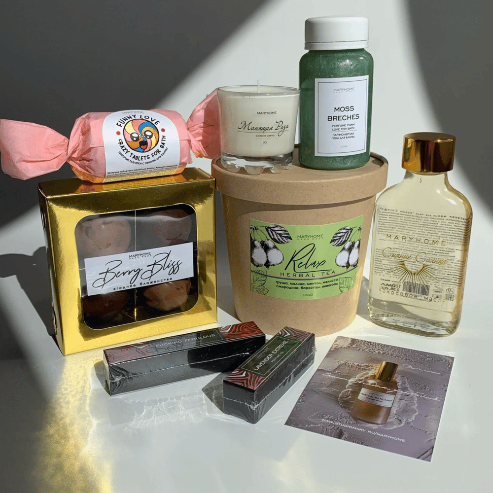 Описание набора: 1. Кокосовое масло, 100мл; 2. Свеча, 50г; 3. Пена для ванны, 120мл; 4. Набор конфет ручной работы “Ягодное Блаженство”, 130г; 5.Шипучие таблетки для ванны, 90г 6. Духи, 10мл;…