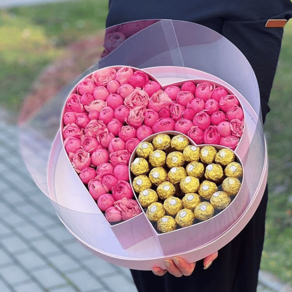 Пионовидная роза и ферреро роше